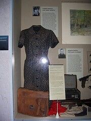 Bloodstained dress and briefcase of Yvonne Cormeau on permanent display at the Imperial War Museum