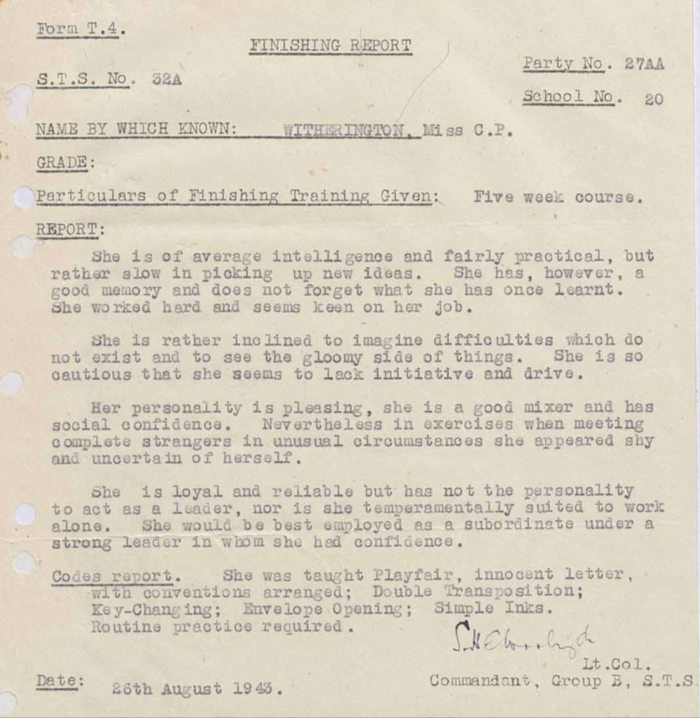 The assessor also considered that Pearl was not leadership material. In that assessment he made a mistake because a year later in France Pearl led a Resistance network of 4,000 men, the only woman to attain such a position.