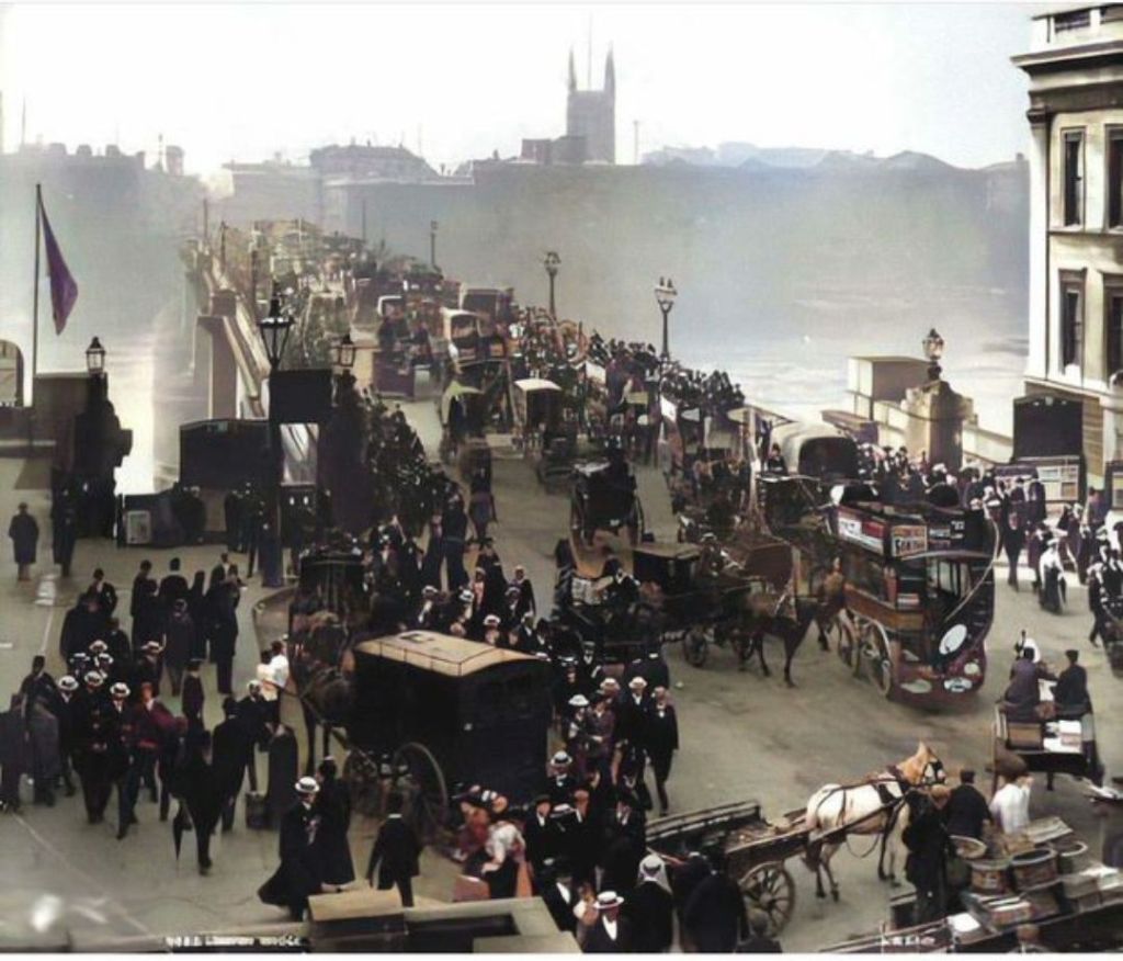 A scene familiar to my London ancestors, London Bridge looking north to south, 1890.