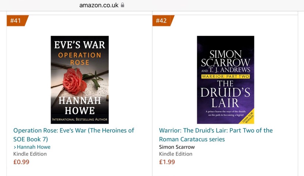 We experimented by placing Operation Rose, Operation Watchmaker and Operation Overlord, the next three books in my Eve’s War Heroines of SOE series, on pre-order without blurbs and with dates running into next January, and already they are top 50 hot new releases. Many thanks to my readers for their support.