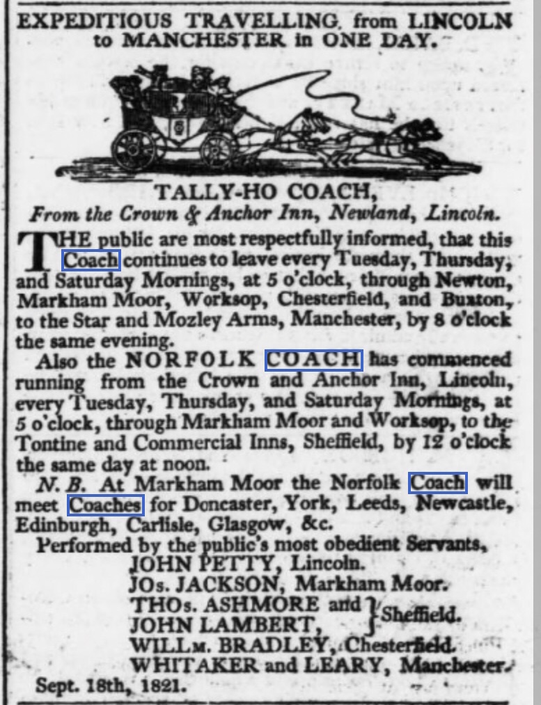 Sarah probably travelled to London on a coach. The journey from Tetford to London cost around £2, a huge financial commitment. She was making a life-changing journey and if things didn’t work out in London it was unlikely that she could immediately afford the journey back.