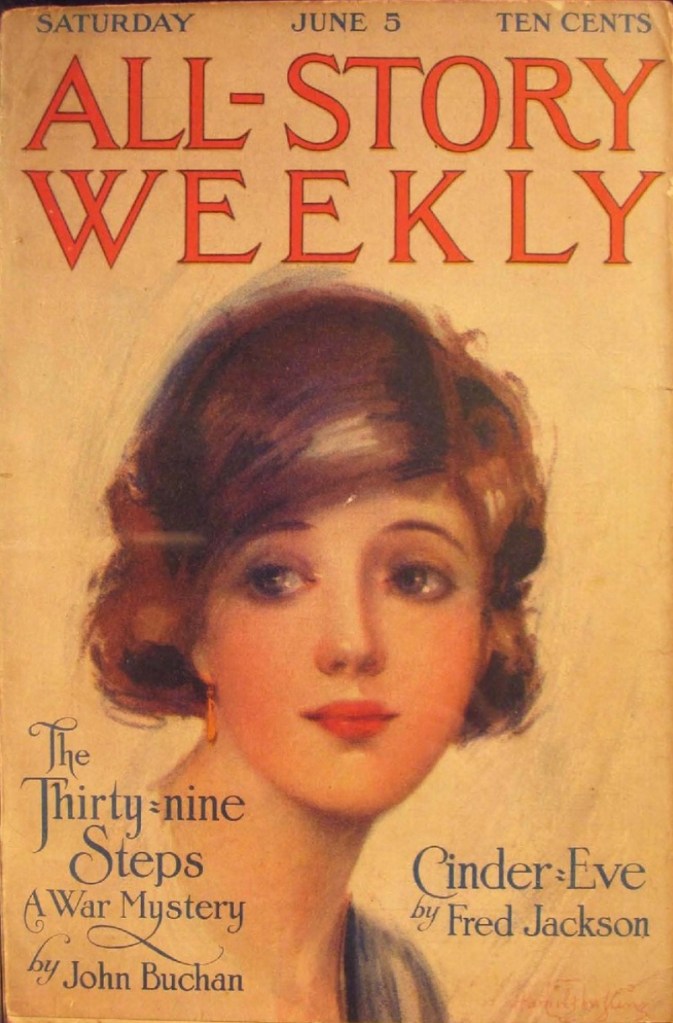 The Thirty-Nine Steps by John Buchan first appeared as a serial in All-Story Weekly, (5 – 12 June 1915) and Blackwood’s Magazine (July – September 1915). The story was published as a novel in October 1915 by William Blackwood and Sons.