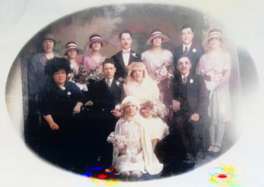 A wedding in London, 20 February 1927. My 2 x great grandmother Jane Dent is seated on the left and her husband, my 2 x great grandfather William Stokes, is seated on the right. The bride is their daughter Louisa Elizabeth Stokes. William was a master carpenter while Jane was a teenager in Whitechapel during the terror of Jack the Ripper.