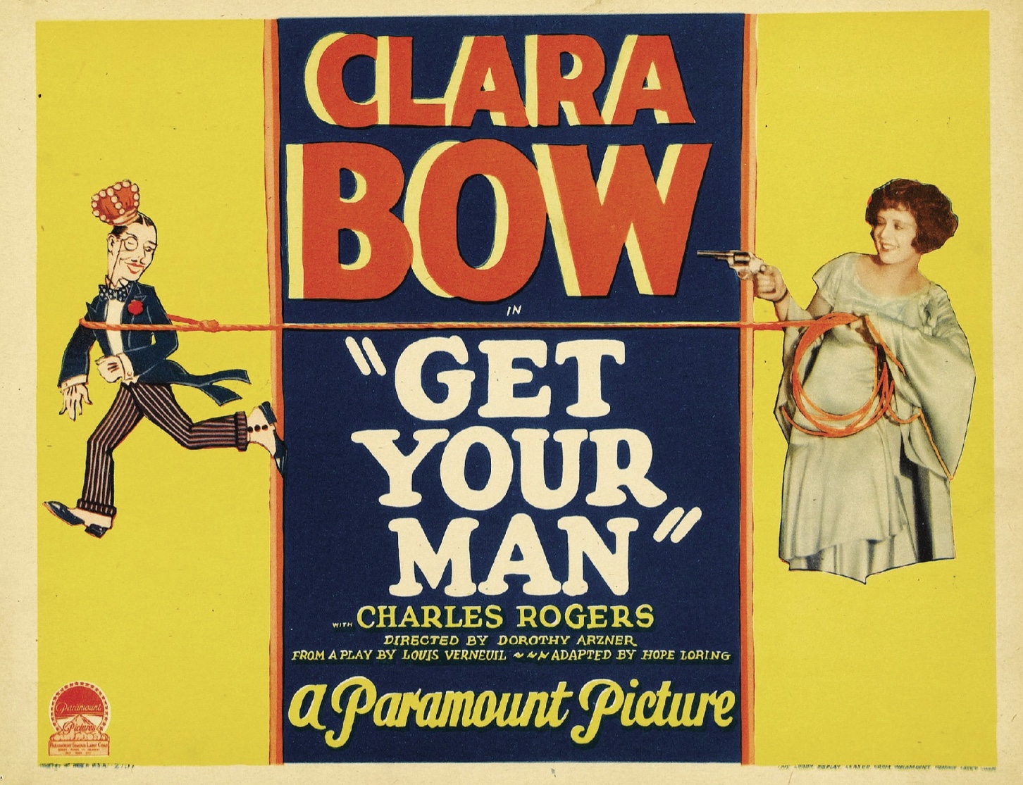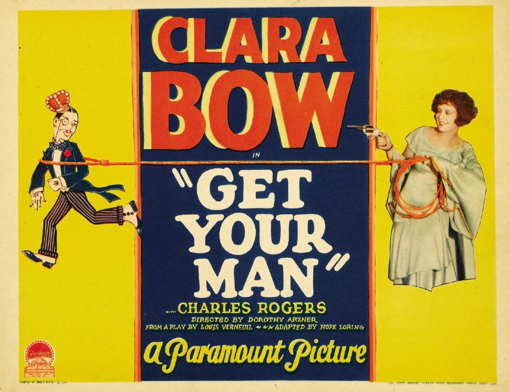 Clara Bow’s forty-second movie was Get Your Man, produced between September 16 and October 13, 1927, and released on December 10, 1927. Clara played Nancy Worthington, a young woman out to ‘get her man’. Photoplay said of Clara’s performance: “Clara continues to charm and fascinate.”