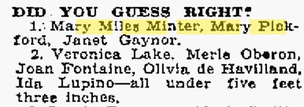 I stumbled across this article during my research into the murder of Hollywood film director William Desmond Taylor. The newspaper asked the question: which past and present actresses have to stand on a box during the love scenes? Here’s the answer 👇