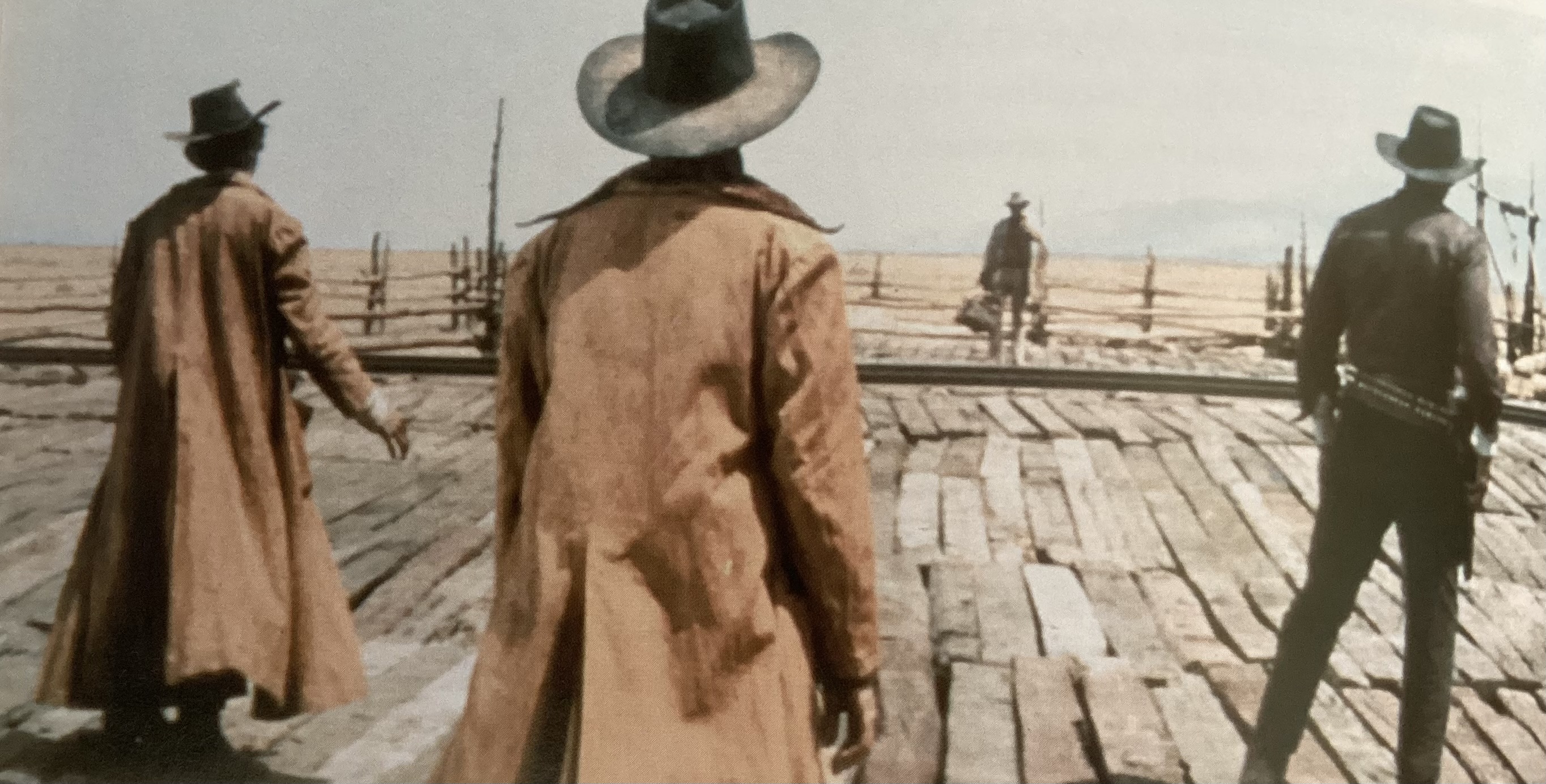 Charles Bronson’s character is walking towards three gunmen in which 1968 movie?