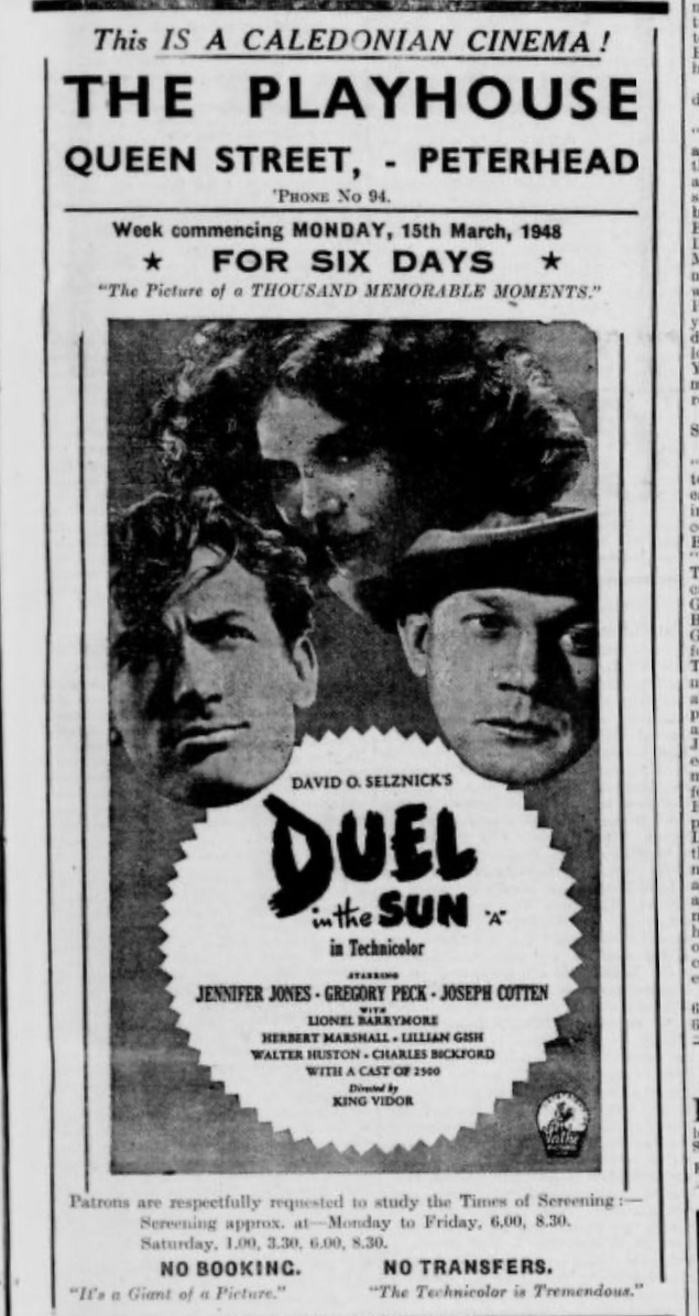A promotion for Duel in the Sun, aka Lust in the Dust, “A Picture of A Thousand Memorable Moments.”