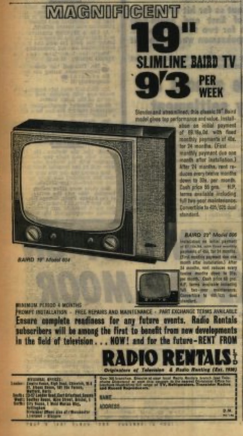 Television highlights: Stereophony – no pictures, sound only, Juke Box Jury with Sian Phillips, Pete Murray and Una Stubbs, The Rag Trade.