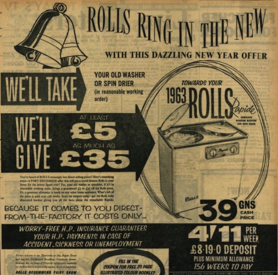 Put off Monday wash day until later in the week, said a spokesman for the Electricity Board. The appeal followed a day of power cuts due to the Big Freeze and the power workers’ go-slow. Complete blackouts may be more widespread at morning and evening peak periods.