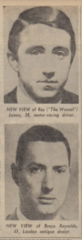 Detectives believe that the mail train robbers have sent their share of the loot to hideaways outside London by train. The detectives are looking for large packing cases bought in the past ten days. They are also looking for Roy John James – The Weasel, Bruce Reynolds and James White.