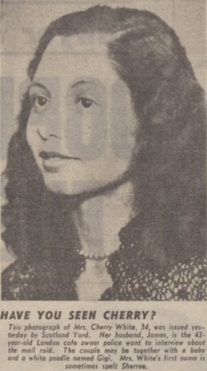 Great Train Robbery: Scotland Yard remains convinced that most of the stolen loot is still in Britain. The police now have four-fifths of the serial numbers of the fivers stolen. Meanwhile, detectives are keen to interview Cherry aka Sherree White and her husband James.
