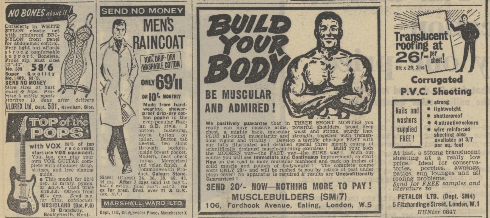 Personal Advertisement: Ladies and Gentlemen’s Wigs. For transformations, toupees and scalpettes, contact the Midland Hair Manufacturing Co, Ltd, Nottingham.