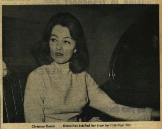 Christine Keeler was arrested by Scotland Yard detectives last night and taken to a London police station. Christine, wearing a green suede jacket over a grey skirt, tripped down the stairs and got into a waiting police car. The arrest was apparently in connection with the “Lucky” Gordon assault case.