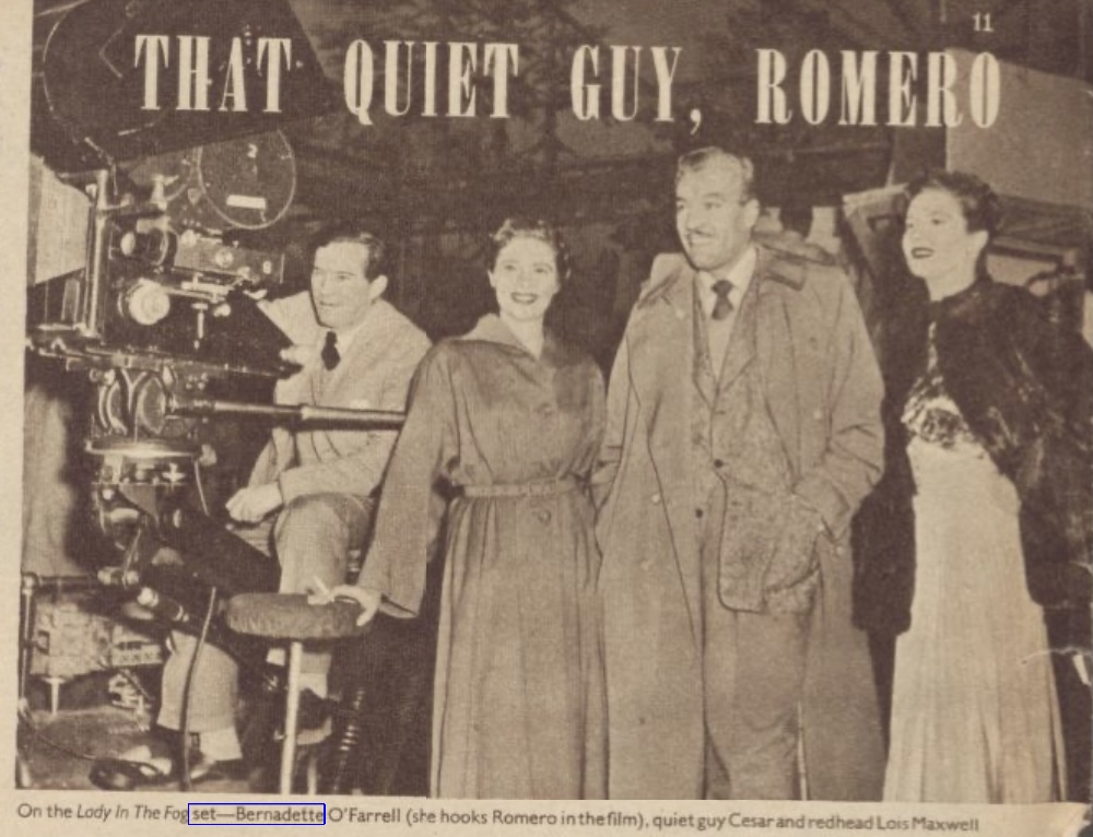During 1951-1952 Bernadette O’Farrell made three films – Life in Her Hands, Lady Godiva Rides Again and Lady in the Fog. Lady Godiva Rides Again was directed by her husband, Frank Launder.