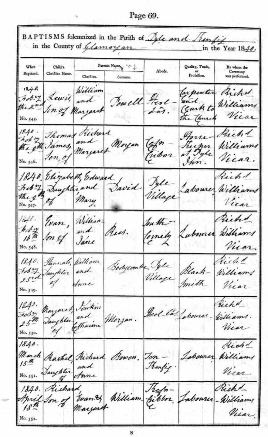 During my research, I wondered what persuaded Richard to travel twenty miles west to settle in Pyle. Then, I hit upon a theory. As an ostler, he moved there to work at Pyle Coaching Inn, the main Inn on the main highway. Then, while researching the births of Richard and Margaret’s children, I discovered that Richard was listed as a horse keeper at Pyle Coaching Inn, and living in nearby Cefn Cribwr, or Tythegston Higher as it was also called. It’s lovely when your theories are confirmed in that fashion.