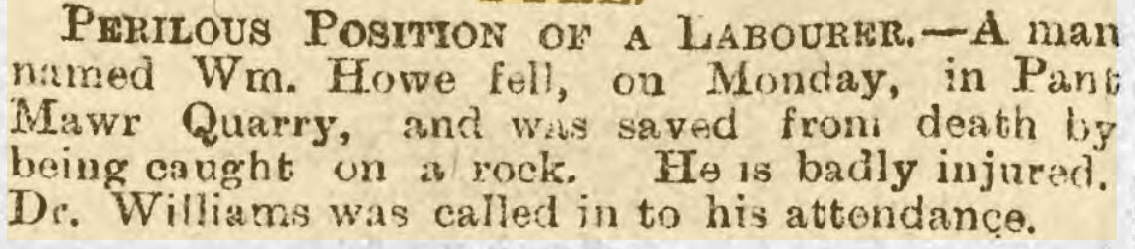 In February 1895 William had a life threatening accident in the quarry, which was recorded in the South Wales newspapers.