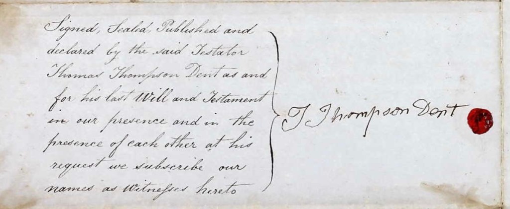 But what of Thomas’ son and my direct ancestor, Thomas Thompson Dent Jr? Why didn’t the will mention him? The reason is Thomas Jr, his wife Dorothy Hornsby and their five children had set sail for New York en route to Canada, arriving on 24 June 1846.