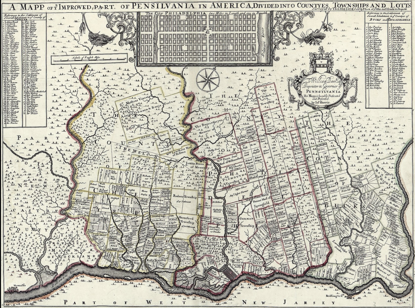 In 1687 Thomas Holme drew this map of Pennsylvania. The Welsh Tract appears to the left of centre.
