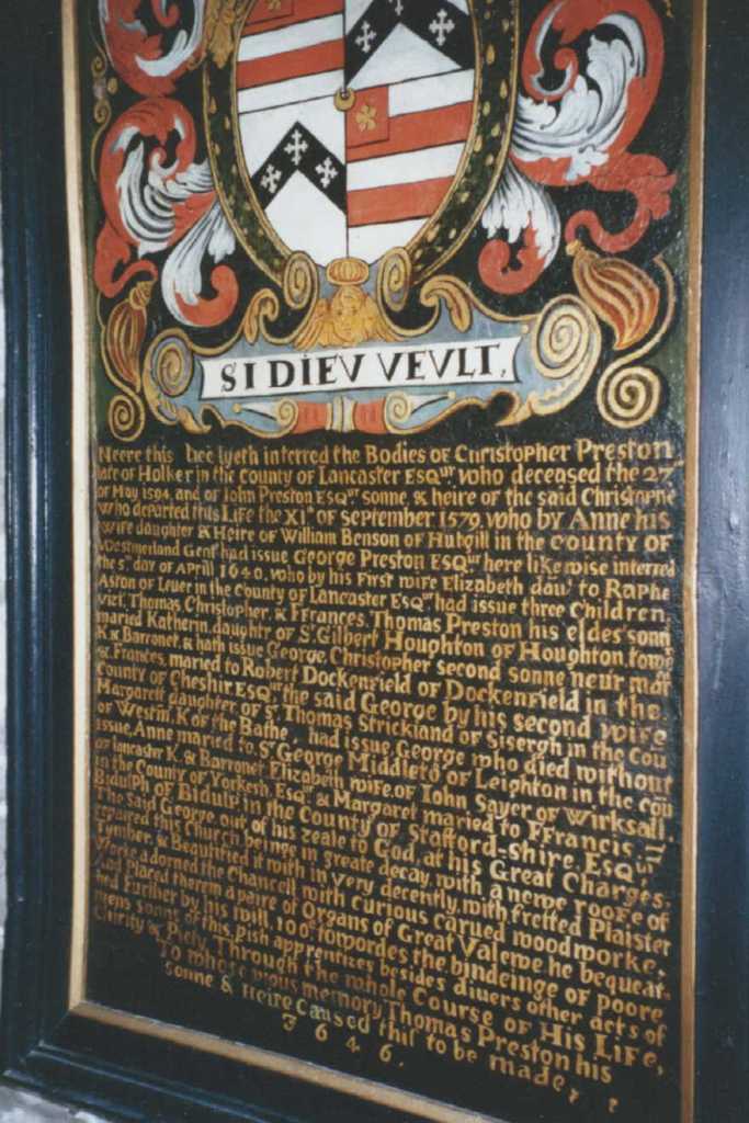 George Preston was a great benefactor of the stately church at Cartmel, Lancashire where the remains of his grandfather, Christopher, and of his father, John, lay buried. He also supported the poor people of Cartmel by arranging apprenticeships. Furthermore, he established a foundation for scholars so that they could attend St John’s College, Oxford.