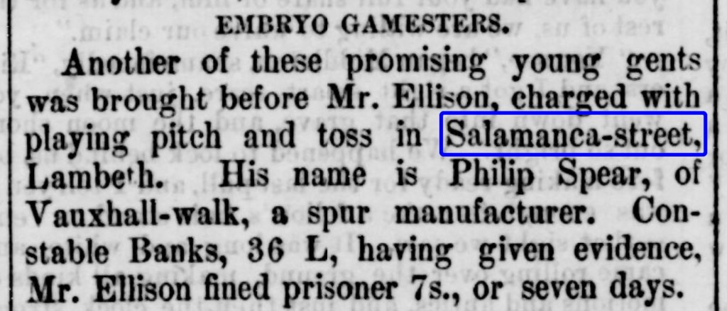 A newspaper report from October 1875 stated that fighting occurred in a house in Salamanca Street and that a large crowd gathered outside. It’s highly probable that my 3 x great grandmother Annie Wheeler was in that crowd.