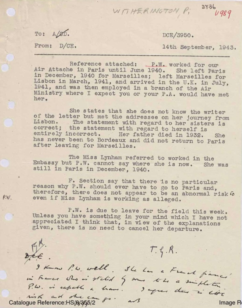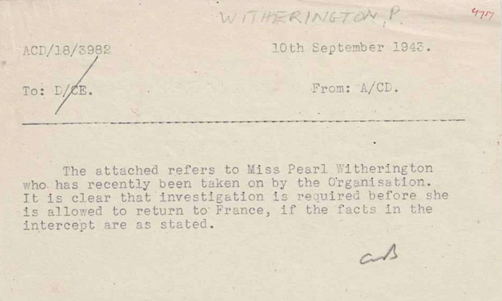 The SOE clear Pearl and don’t foresee any risk of her meeting the ‘mutual friend’. She is on her way to France.