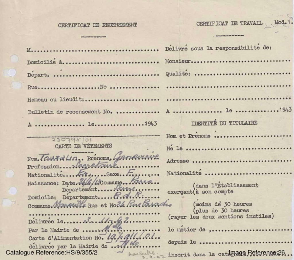 Pearl’s cover story as secretary Genevieve Touzalin. By an amazing coincidence, ‘Genevieve’ lived on Rue Paradis, Marseille, a street that features in Operation Zigzag.