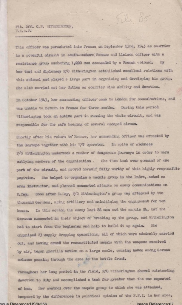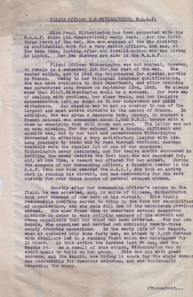 22.2.1945. Pearl must report back to the SOE immediately. She is to be presented to the Queen.