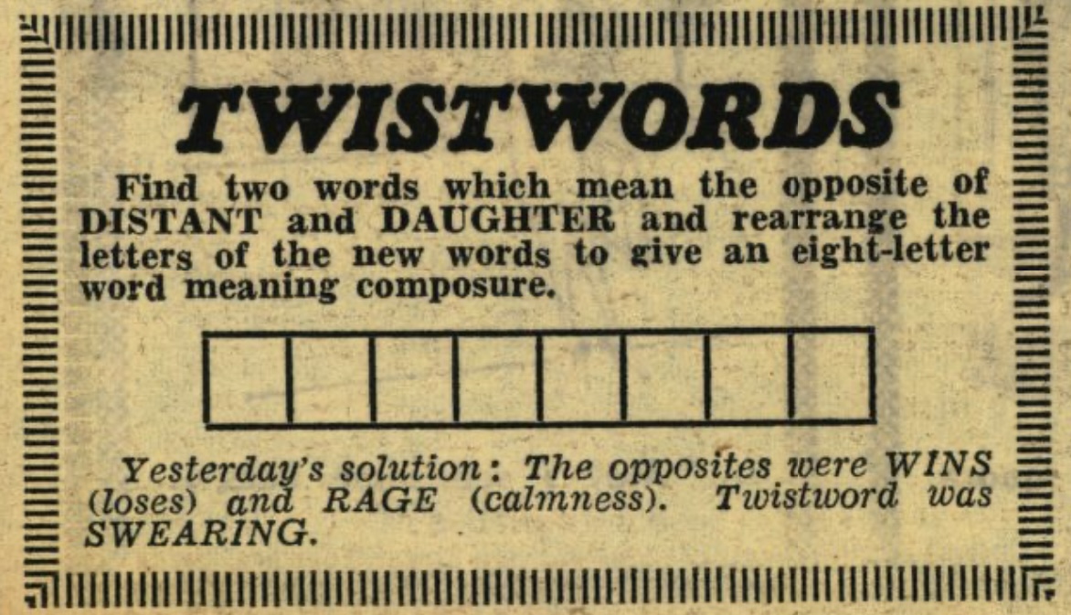 Television highlights: Indoor Athletics. Still Life – play about a nightclub vocalist and a pop singer. Comedy Playhouse – Impasse with Bernard Cribbins and Leslie Phillips.