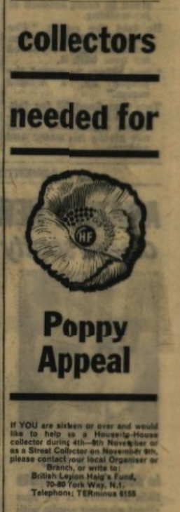 Fancy being a Poppy Day collector next Saturday? The British Legion are appealing for volunteers. They are hoping to reach a donation target of £1,250,000.