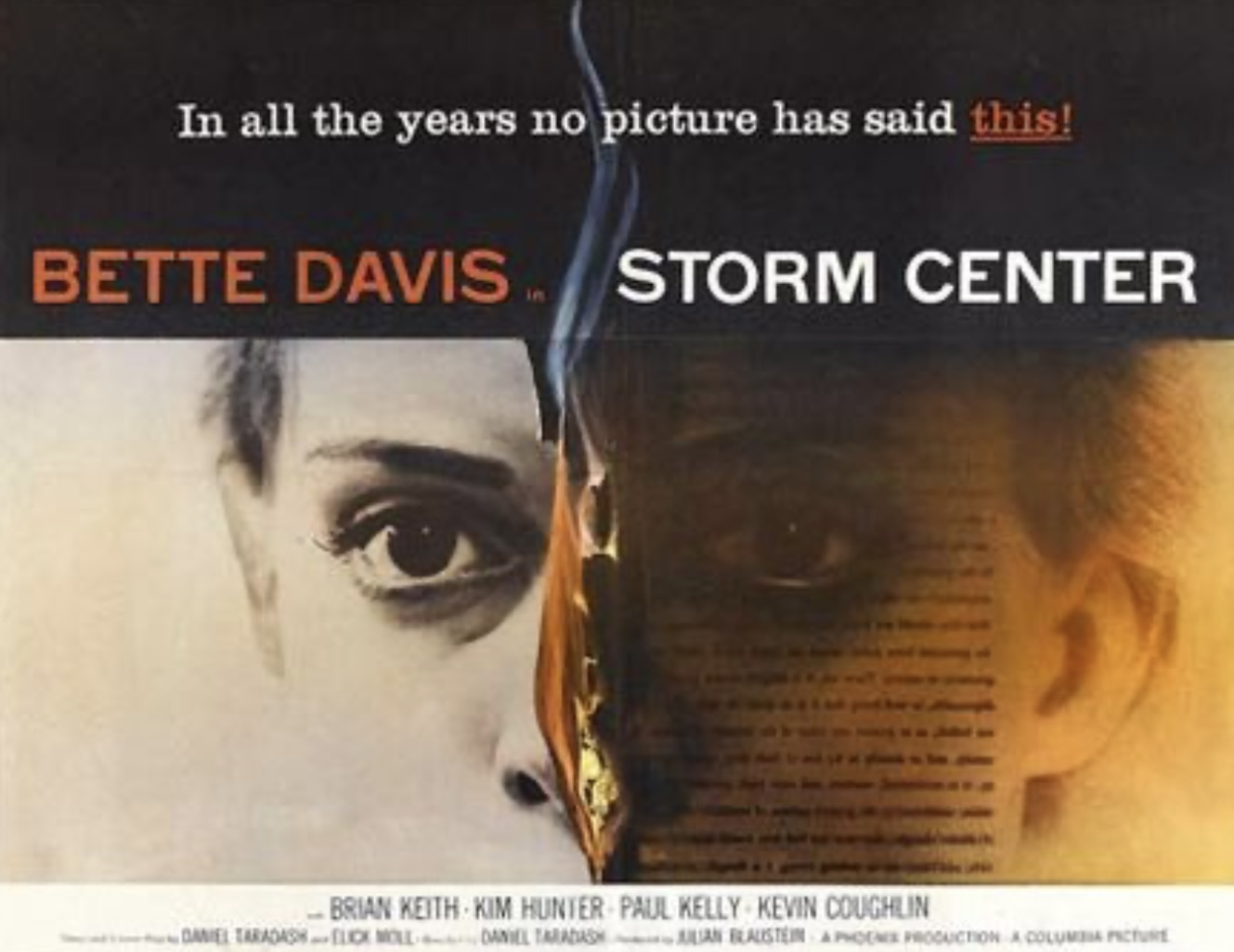 A culturally important movie, Storm Center starring Bette Davis was released in 1956. A noir drama directed by Daniel Taradash, the story focused on three controversial subjects – book banning, censorship and McCarthyism. Storm Center was the first overtly anti-McCarthyism film to be produced in Hollywood.