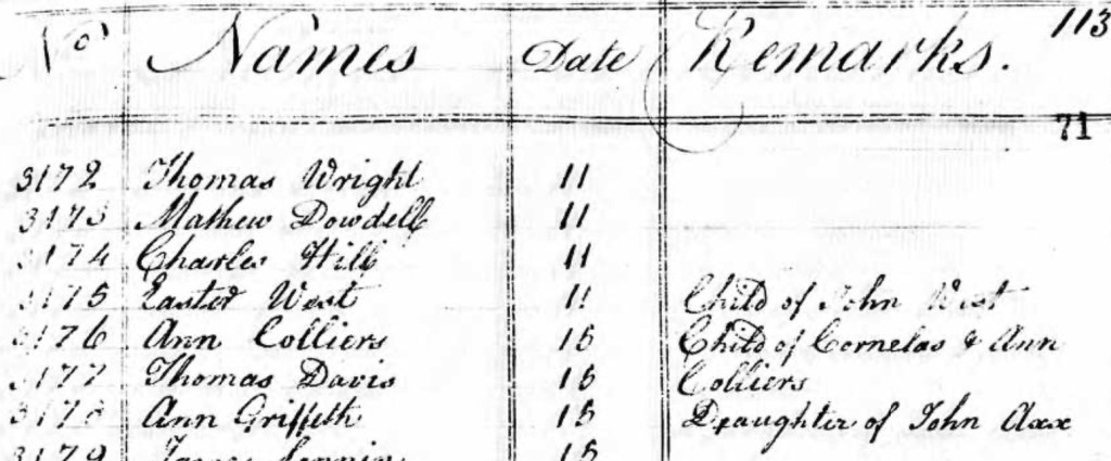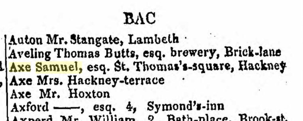 My 5 x great grandparents Samuel Axe and Grace Austin married on 22 September 1803 in Saint Luke Old Street, Finsbury, London (pictured, Wikipedia). Both bride and groom were seventeen years old. Grace’s parents, Isaac Austin and Mary Chetwynd, were also seventeen when they married. Maybe seventeen was the family’s lucky number.