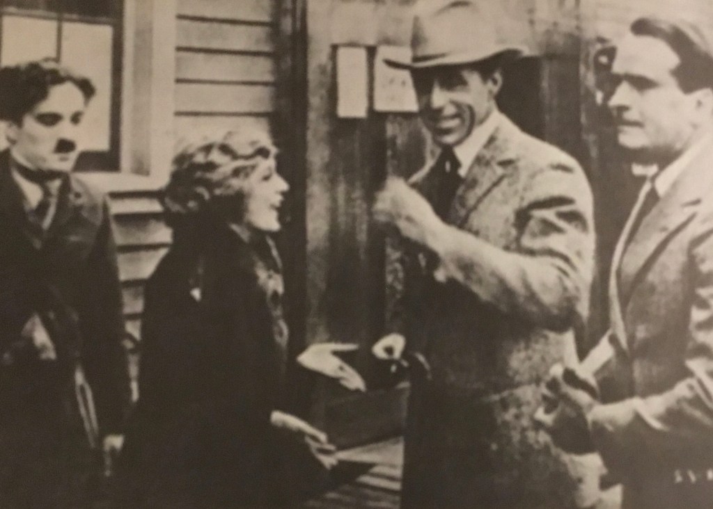 The ‘Big Four’ in 1919 at the time of the formation of United Artists – Charlie Chaplin, Mary Pickford, director D.W. Griffith and Douglas Fairbanks. Chaplin was a regular visitor to the Pickford-Fairbanks mansion, ‘Pickfair’. Chaplin and Mary Pickford were the big earners of the era. When one secured a more favourable contract, the other demanded one too.