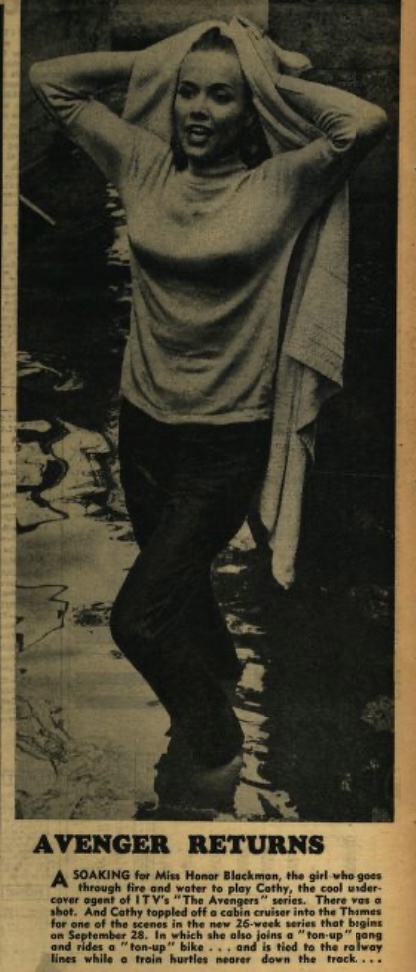 Television highlights: Dr Who – science fiction series, episodes one and two. The Avengers – The Grandeur That Was Rome. The Sentimental Agent – adventure series.