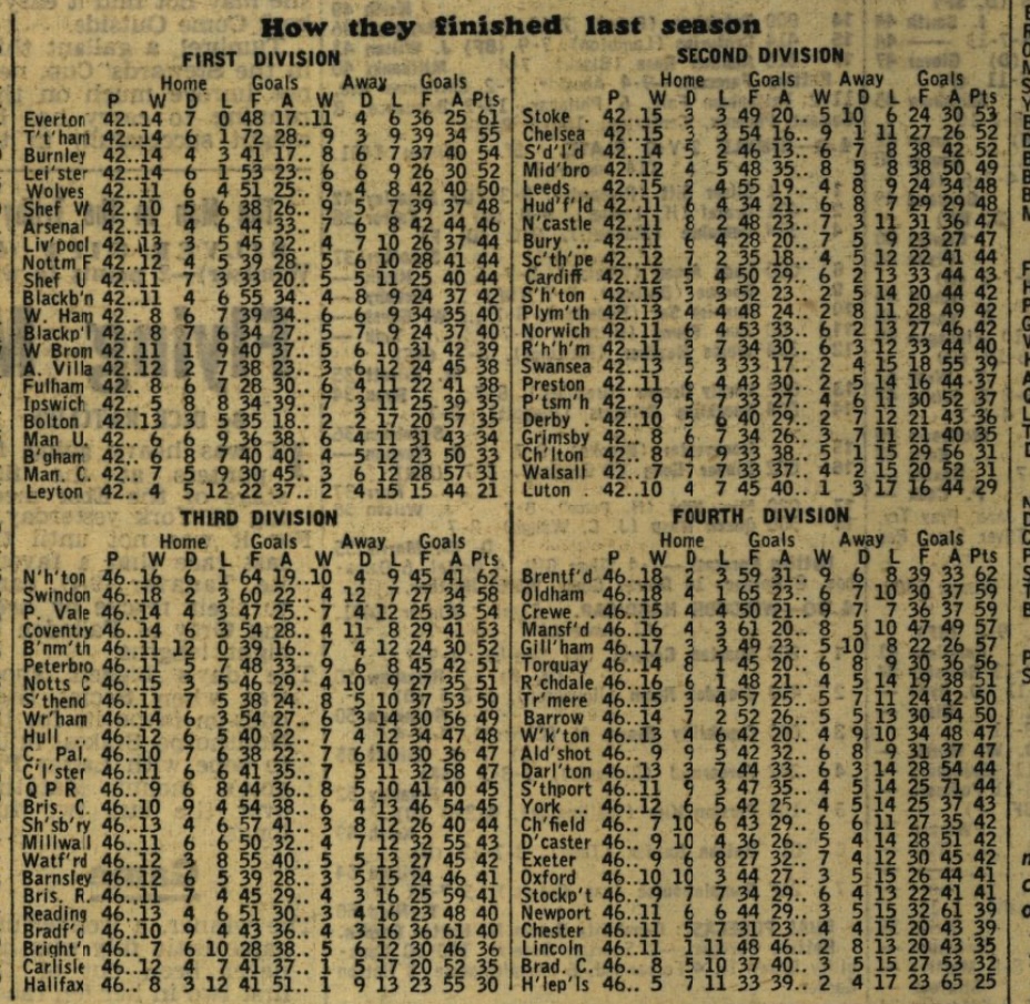 “Wednesday night and millions of soccer-loving working men were looking forward to the tele-recording of the Spurs-Manchester United European Cup game. Alas, it was postponed. Never mind, the BBC will show us a consolation. But what did we get? A documentary on work!” – John Griffiths, Bridgend, Glamorgan.