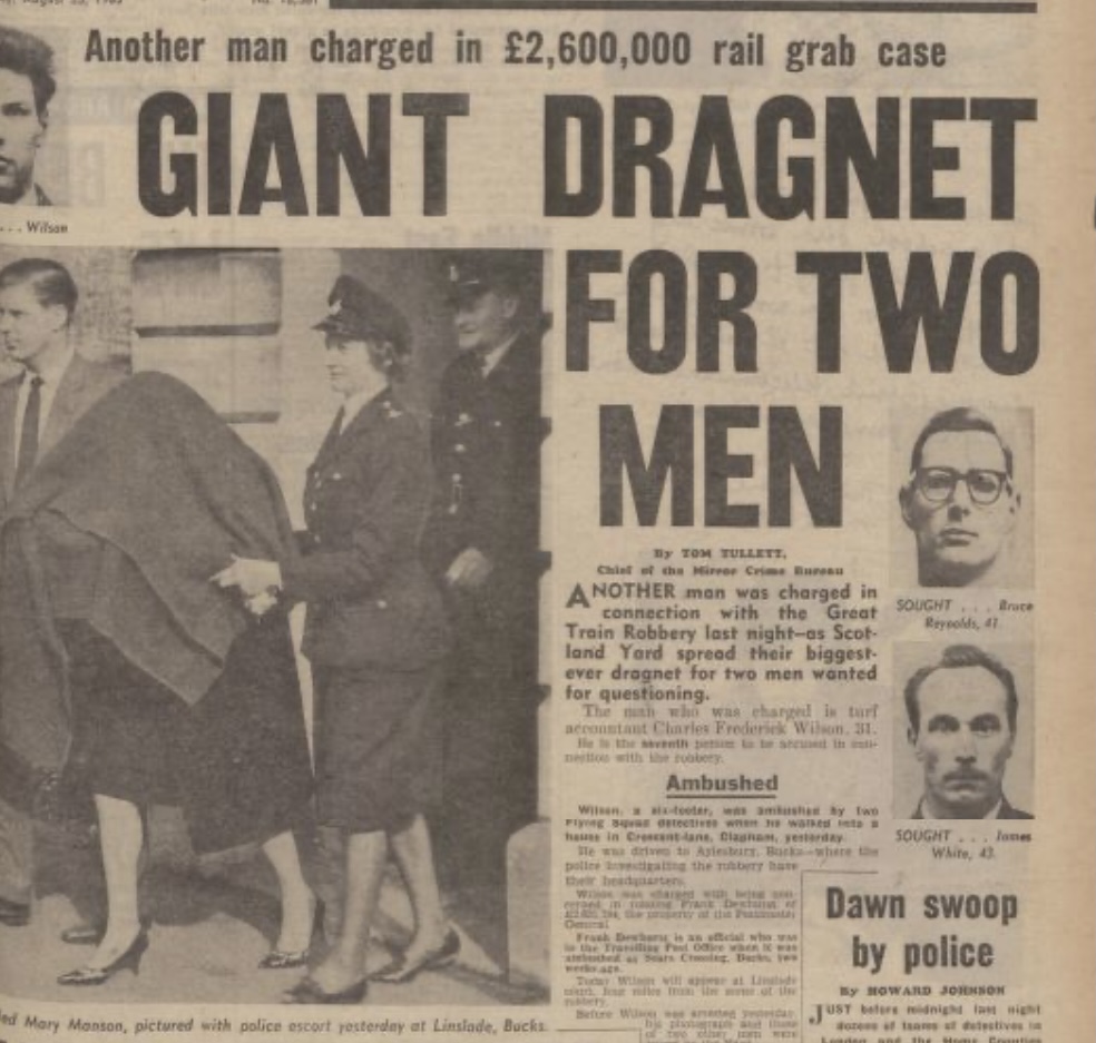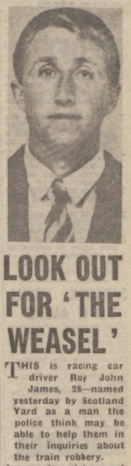 In connection with the Great Train Robbery, police are still seeking to interview Bruce Reynolds, Roy “The Weasel” James, Ronald “Buster” Edwards and his wife June, James Edward White and his wife Sheree.