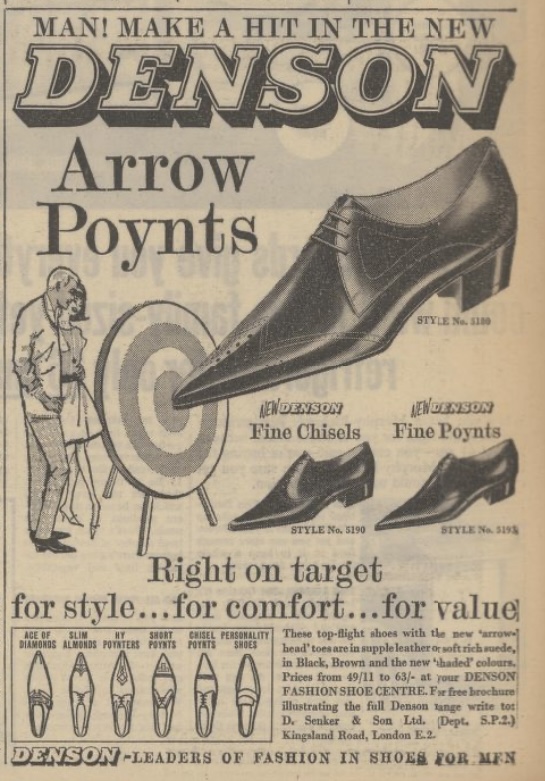 The latest Chelsea fashions for men – pale blue flap-fronted denim pants, silk tailored jackets and pink gingham shirts. The conservative look is out. More jazzy styles are in.