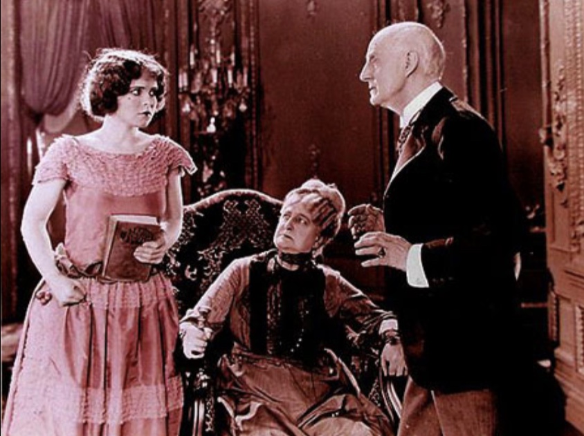 📸 Clara Bow as Janet Oglethorpe, the flapper in Black Oxen, holding a copy of Flaming Youth. Also pictured, Kate Lester and Tom Ricketts.