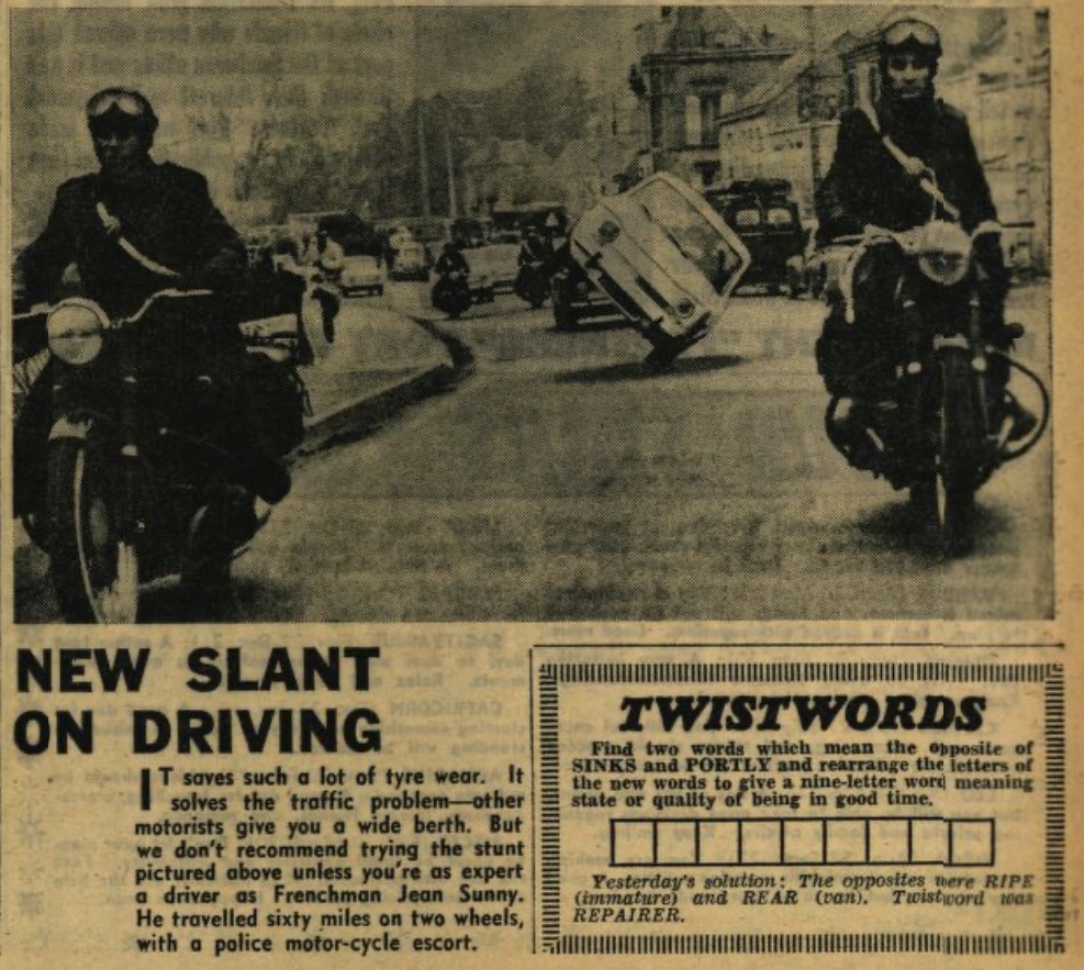 When Leslie Hopkin’s car stalled outside his home he asked his wife Beatrice to sit in the driving seat while he pushed the car to restart it. Leslie shoved and the car shot down the street leaving him standing. Beatrice steered safely past twenty-three parked cars. But her car hit a twenty-fourth. She suffered a broken leg, had four teeth knocked out, and received cuts. Leslie was fined £1 for allowing his wife to drive uninsured.