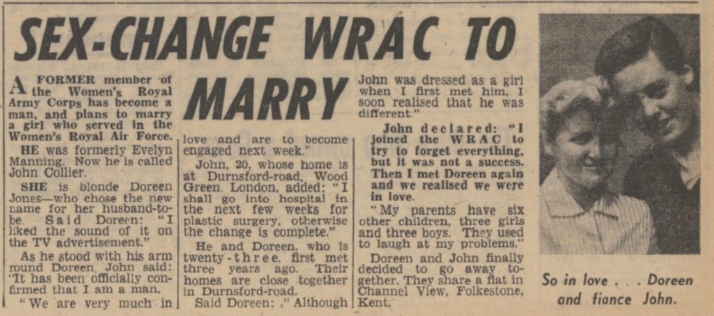 Mrs Rosina Lewis, the blonde wife of the licencee of The Bull at Hornchurch, Essex, has a broomstick hung on the wall in the saloon bar. She claims that the broomstick helps to cure customers’ hangovers through witchcraft. “My great-grandmother was a witch in Essex,” she said. “And she passed many of her secrets on to me.”