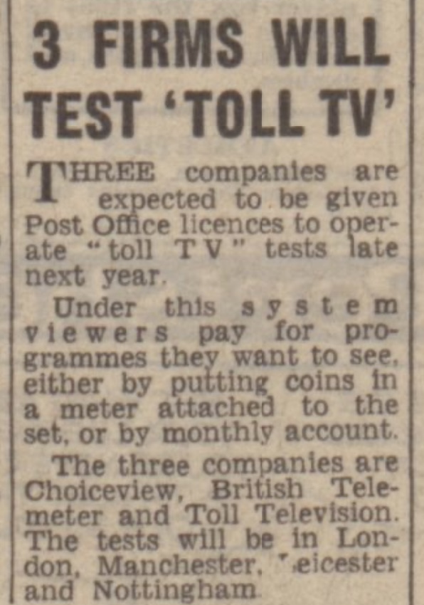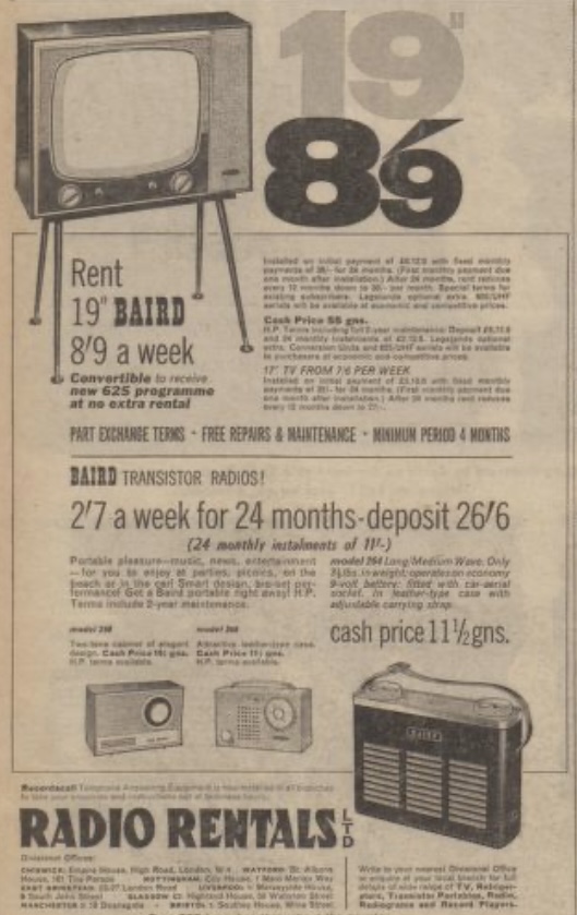 Commercials will be added to records played on Juke Boxes in 300 of London’s coffee bars. A spokesman explained, “Teenagers are an elusive and difficult market, even though they spend nearly £1,000,000,000 a year. They don’t really watch tv or read the newspapers. This way we can catch them in their own environment.”