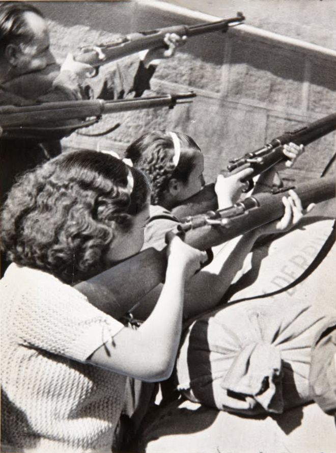 Pictured: Two women and a man at the Siege of the Alcázar in Toledo, 1936.