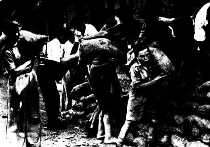 In Spain, Loyalist doctors and nurses would often scrape the mould off stale bread and jam to create a meal. However, despite mass unemployment and wages below the breadline, the people of Wales rallied to the Loyalist cause and through the Spanish Aid Committee made numerous collections for the beleaguered communities in Spain. Here the people of Bedwas proudly pose with an assortment of tea, corned beef, cocoa, potted meat, jam, cheese, beans, custard, coffee, soap and socks.